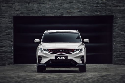 Кроссовер выглядит свежо и динамично за счет выверенных пропорций кузова и стремительных линий выштамповки. Его спортивный характер подчеркивают резко очерченные фары с выразительным светодиодным рисунком и сдвоенные патрубки выхлопной трубы. Центром притяжения передней части стала решетка радиатора с многоцветными концентрическими элементами, обрамляющими логотип. В максимальной комплектации X50 обращает на себя внимание красными тормозными суппортами.