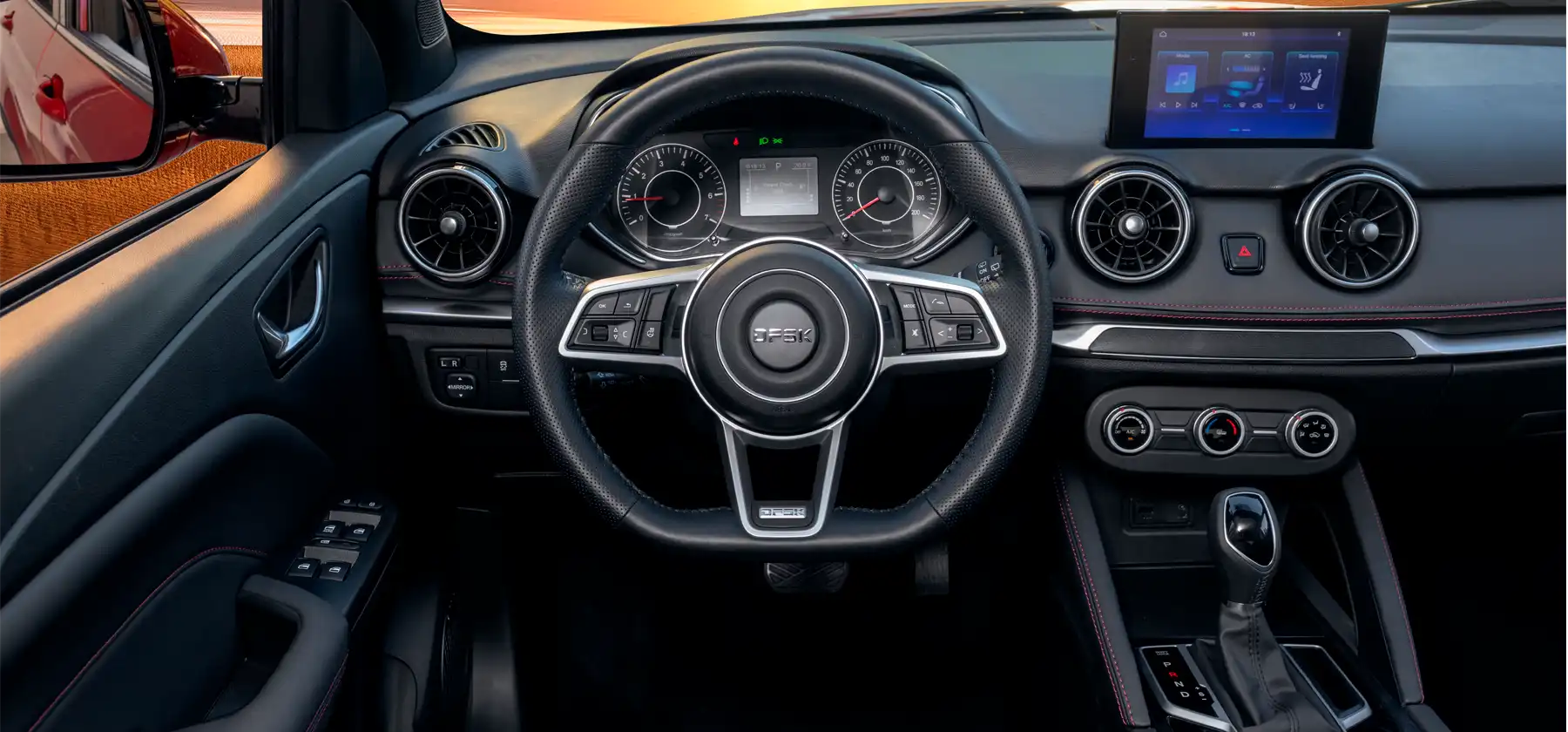 Интерьер DFSK 500 продуман до мелочей и ориентирован на водителя и пассажиров. Качественные материалы и эргономичная компоновка элементов управления создают атмосферу уюта и функциональности. 7-дюймовый сенсорный экран мультимедийной системы, расположенный в центре передней панели, обеспечивает интуитивный доступ к настройкам и развлечениям. Подогрев передних сидений и рулевого колеса гарантирует комфорт даже в суровых погодных условиях.