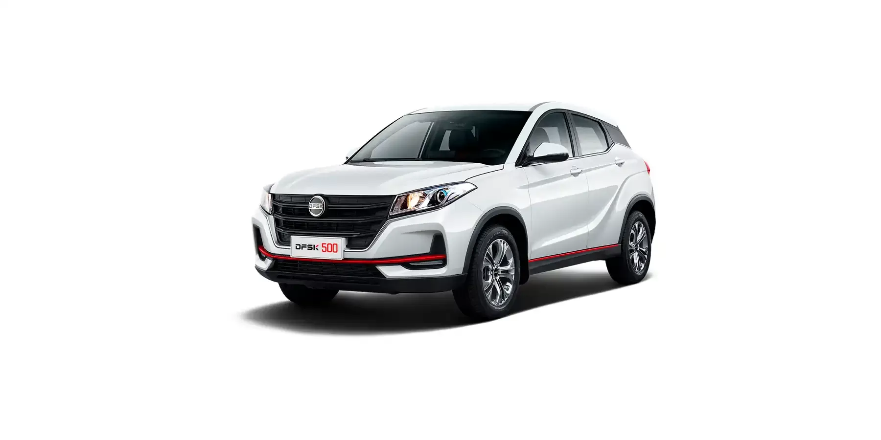 Главным акцентом экстерьера Дунфэн DFSK 500 является крупная решетка радиатора трапециевидной формы в черном цвете с глянцевыми горизонтальными ламелями. Яркие вставки в бамперах и черные накладки на порогах эффектно дополняют образ и делают его более выразительным. Стильный силуэт подчеркивается эффектом «парящей» крыши. Автомобиль доступен в четырех цветах кузова: черном, белом, красном и синем.