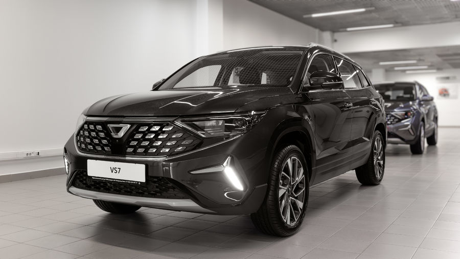Внешность VS-7 завораживает и притягивает к себе все взгляды. Центральным элементом экстерьера является массивная решетка с двумя симметричными блоками с хромированными ячейками, обрамляющими серебристый логотип марки. Агрессивно вытянутые фары добавляют облику кроссовера экспрессии и динамики, а воздухозаборник напоминает пасть дикого животного. Плавные линии кузова гармонично успокаивают экстерьер, наделяя его элегантностью и основательностью.