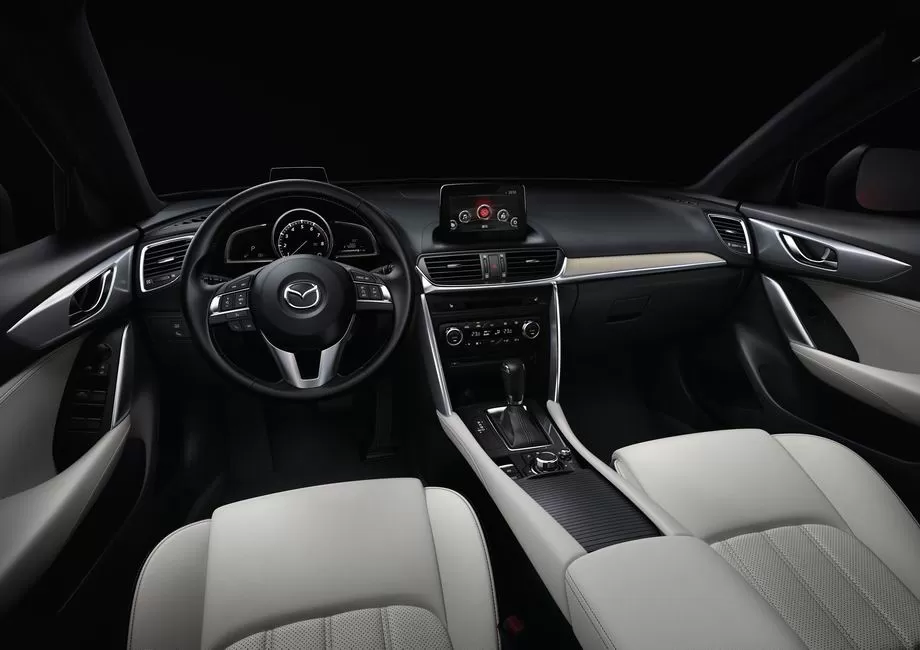 Салон СХ-4 имеет премиальное исполнение и элегантный и претенциозный дизайн. На выбор можно купить автомобиль с интерьером в черном, белом, песочном и красном оттенке. За комфорт во время поездки отвечают эргономичные кресла с выраженной боковой поддержкой, которые снимут нагрузку и удержат тело в оптимальном положении при маневрах на высокой скорости. Приборы и органы управления расположены таким образом, чтобы создать вокруг водителя технологичное пространство – до любой кнопки или рычага можно легко дотянуться, не отвлекаясь от управления автомобилем. После рестайлинга у Mazda CX-4 увеличился экран мультимедийной системы – теперь его диагональ составляет 8 дюймов.