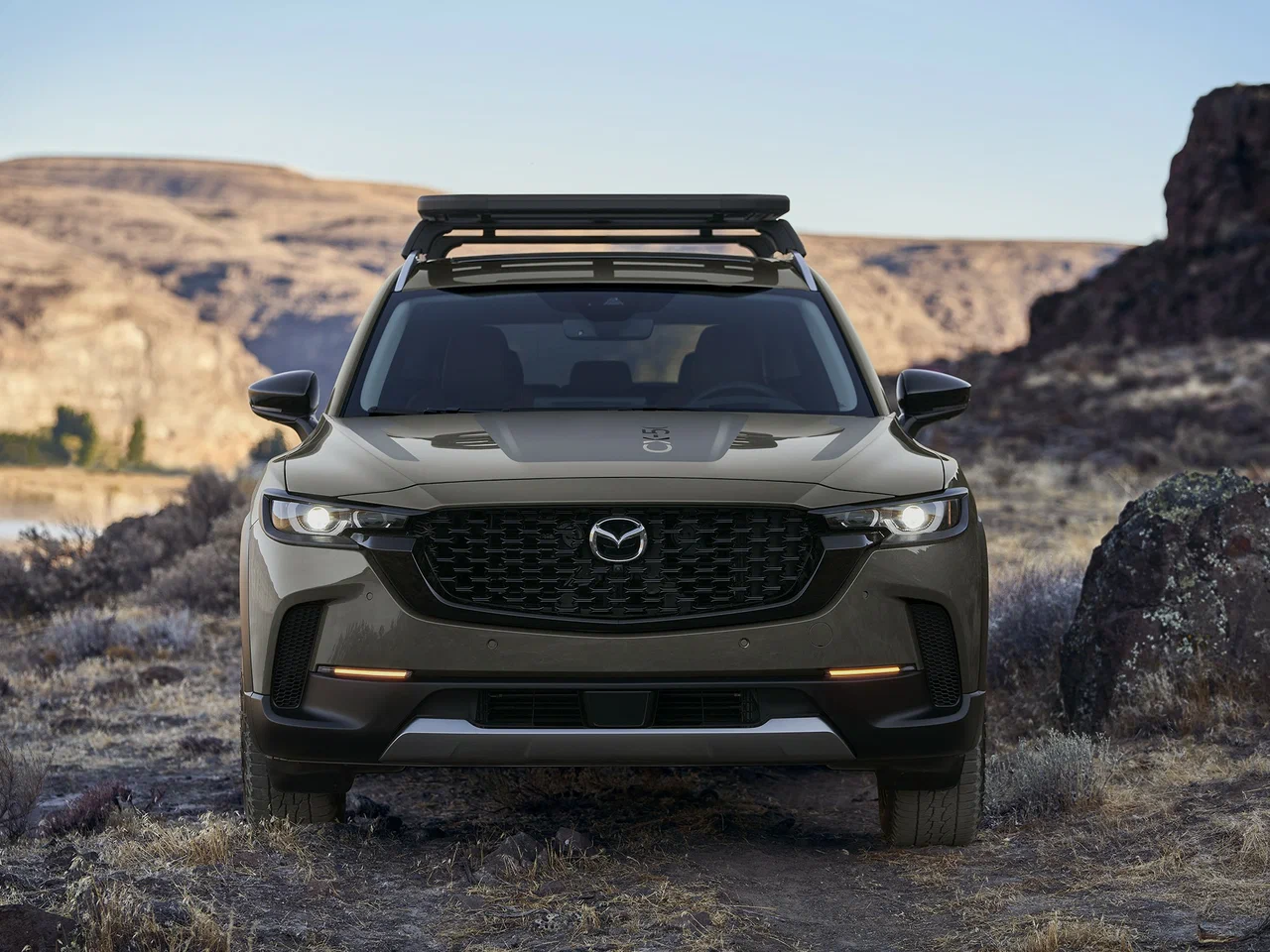 Дизайн CX-50 выполнен в фирменном стиле KODO — «дух движения». Четкие линии, и стремительный силуэт придают авто спортивный, элегантный и современный вид. Выразительная решетка радиатора окрашена в черный цвет и имеет ячеистый рисунок. Ее окантовывают черные молдинги, плавно переходящие на фары. Светодиодная оптика с агрессивным «взглядом», стильные колесные диски и защитные элементы кузова из неокрашенного пластика подчеркивают внедорожный характер модели. CX-50 выглядит одновременно утонченно и мощно, эффектно выделяясь в автомобильном потоке.
