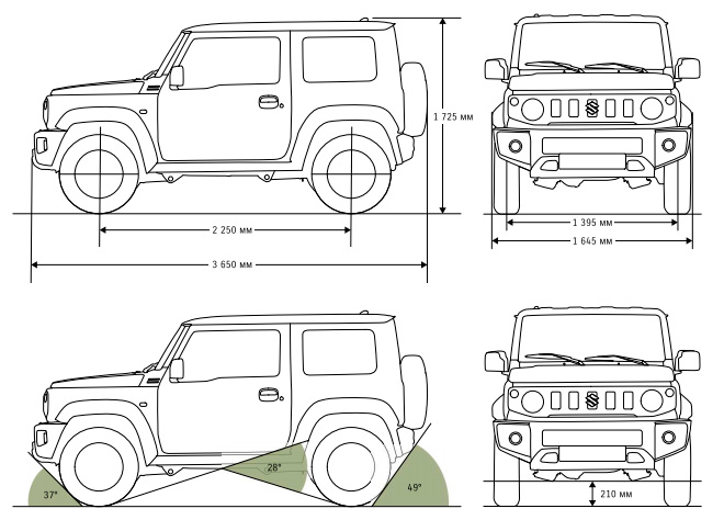 | Длина с учетом запасного колеса, мм | 3 650 | ||